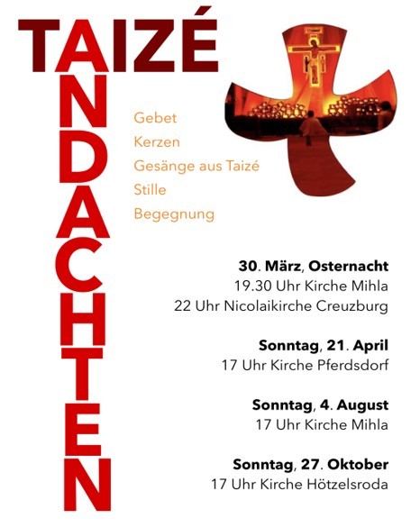 Taizé-Andachten 2024 in den Kirchspielen Creuzburg, Mihla und Neukirchen