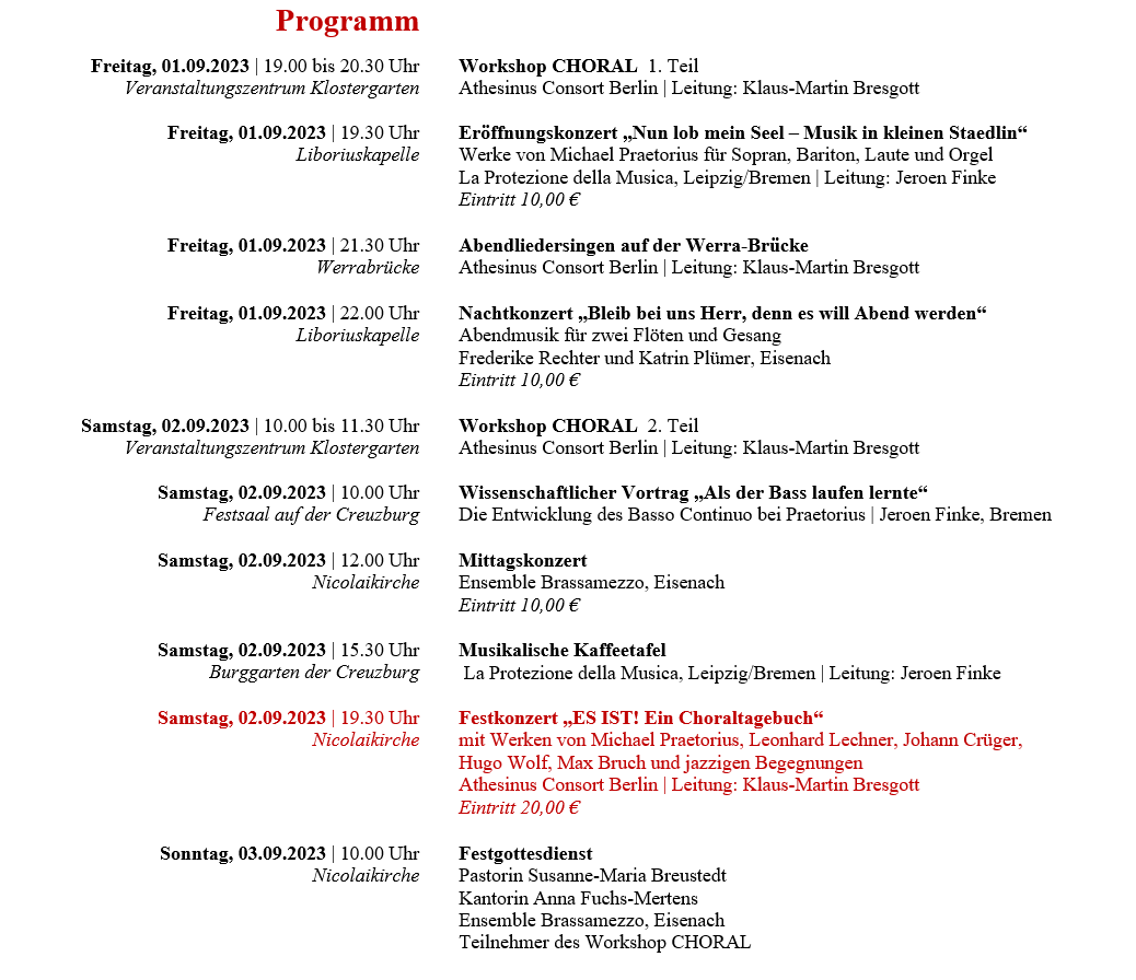 XXVI. Michael-Praetorius-Tage, 1.-3. September, Creuzburg